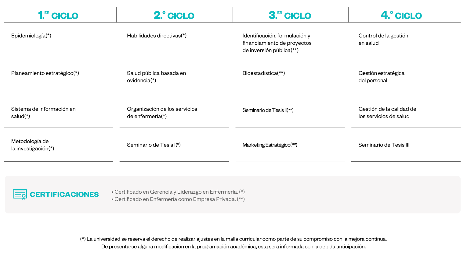La Maestría en Ciencias de Enfermería con mención en Gerencia de los Cuidados de Enfermería de la Universidad Norbert Wiener forma profesionales capaces de liderar la gestión del cuidado con una visión estratégica, humana y basada en la calidad. El programa integra gestión de los cuidados, liderazgo institucional e investigación aplicada, preparando a los estudiantes para responder con solvencia a los retos actuales del sistema de salud.