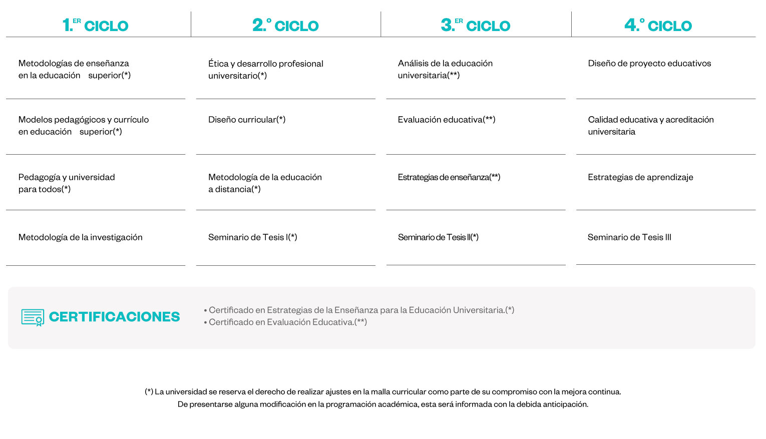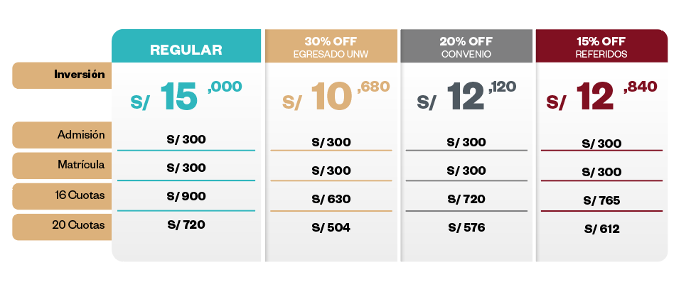 Posgrado de la Universidad Norbert Wiener se reserva el derecho de hacer cambios por motivos de fuerza mayor.